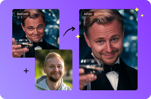 Swap your face into any photo or video easily without editing skills. Explore your new look and have more fun with Vidnoz FACE SWAP tool!